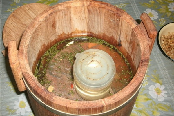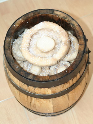 Récolte de champignons salés: mariner dans une cuve en chêne