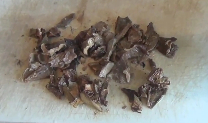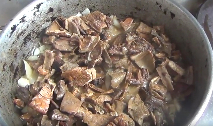 - Couper les champignons en morceaux et ne pas verser la solution. Il peut être utilisé en l'envoyant dans la casserole avec un autre bouillon, après l'avoir filtré au préalable.