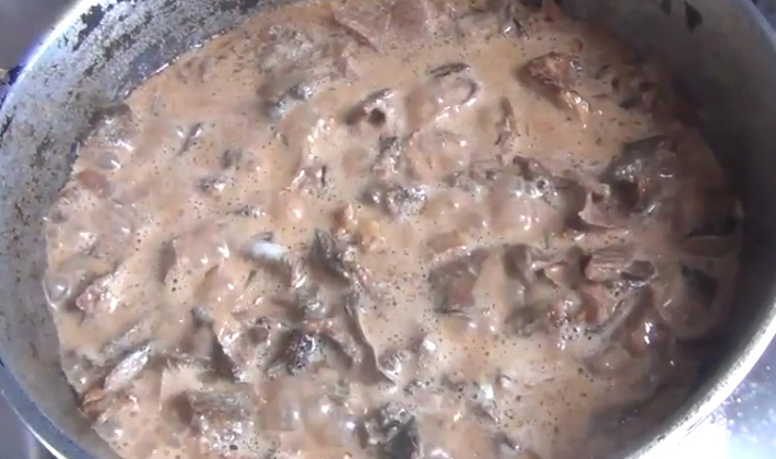 - Faites frire les oignons et les champignons dans une poêle avec le beurre préchauffé, ajoutez la farine, mélangez et au bout de 3 minutes. éteindre le feu.