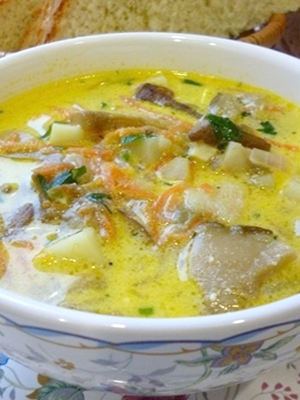 Parmi les plats à base de champignons séchés au safran, je tiens tout particulièrement à souligner la soupe aux champignons.