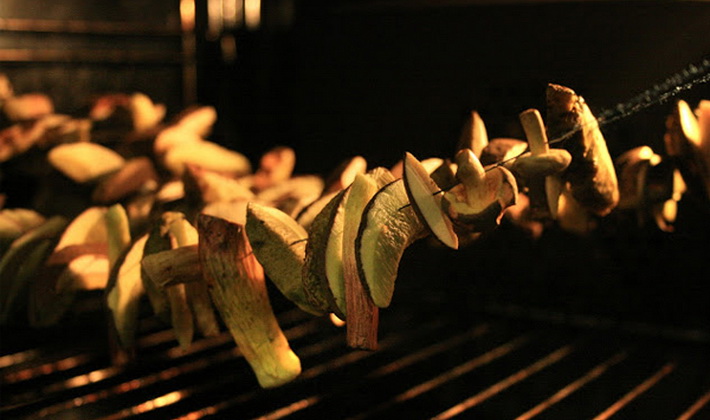 Le séchage des champignons au miel dans le bain permet de mener à bien le processus dans une pièce sèche, chaude et bien ventilée. La qualité du séchage des champignons dépend de la façon dont votre bain est chauffé. La meilleure option serait de sécher au four avec un registre ouvert. Les champignons doivent être placés sur les grilles chauffantes de manière à assurer un afflux d'air sec et à éliminer l'excès d'humidité des champignons. Les conditions principales pour sécher les champignons Les champignons à la maison dans le bain public restent les mêmes: nettoyer, couper les cuisses, ne pas laver et ne pas toucher à la grille. Avec un tel séchage, les champignons deviennent secs et légers, avec un peu de pression, ils se plient et avec une forte pression, ils se cassent. Au cours du processus de séchage, la teneur en eau des géloses au miel diminue de 80% à 15% et l'arôme est amplifié plusieurs fois.