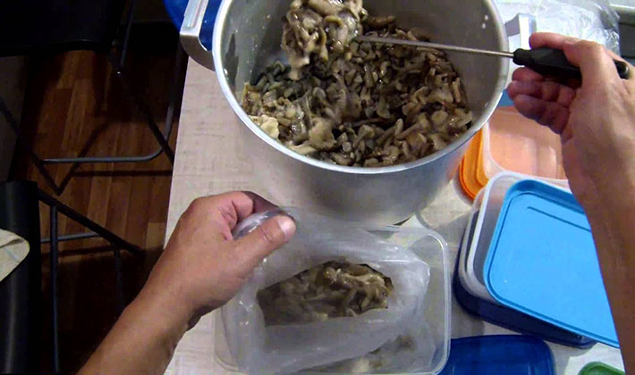 Dans le même temps, gardez à l'esprit que dans un seul emballage, il devrait y avoir autant de champignons que vous allez utiliser à la fois, afin de ne pas les exposer à une congélation secondaire. Les champignons ainsi préparés peuvent être conservés plus de 6 mois. Avant utilisation, ne les décongelez pas - mettez les champignons directement dans une casserole ou dans une casserole. Les champignons bouillis dans de l'eau ou leur propre jus peuvent également être congelés.