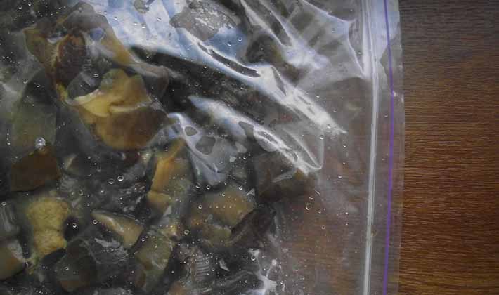 Avant de cuire les champignons porcini à la congélation, lavez plusieurs fois les petits bolets à l’eau froide, mélangez-les à de l’ail finement haché, mettez-les dans un sac ou une boîte en plastique et mettez-les au congélateur.
