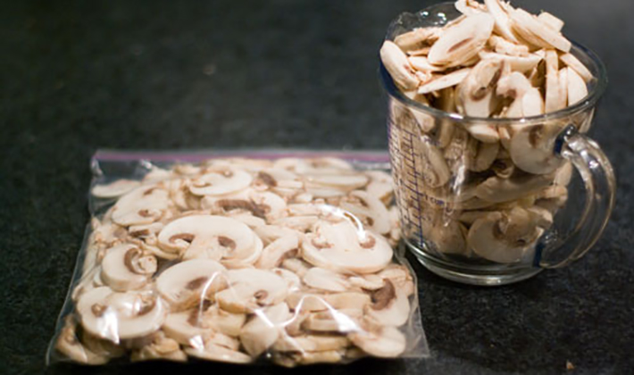 Comment congeler les champignons secs pour l’hiver, pelez, lavez, coupez, mettez dans une casserole et faites cuire dans 3 c. À soupe de 750 g de champignons frais. cuillères à soupe d'huile. Lorsque les champignons deviennent tendres, ajoutez un peu de vin blanc sec, une cuillère incomplète de poivre noir et un bouquet de persil finement haché. Une fois refroidis, ils gèlent. Les champignons sont décongelés à la température ambiante, puis réchauffés et assaisonnés avec du jus de citron lorsqu'ils sont servis. Les champignons congelés à une température de moins 18 ° C (trois étoiles sur la porte du réfrigérateur congélateur) durent jusqu'à un an, les produits semi-finis frits et cuits à l'étuvée - pas plus de trois mois.