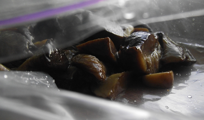 - Les champignons sont stockés dans le congélateur.