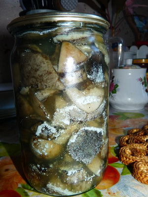 - Les champignons prêts ont été stockés pendant longtemps dans une banque ouverte. Même la première découverte de conservation viole son environnement, le processus d'oxydation commence donc à aller plus vite.