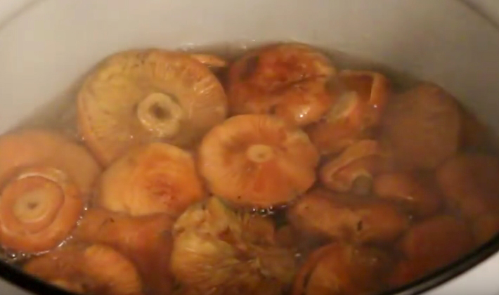 - Les champignons préparés pour le salage sont bouillis dans de l'eau avec addition de feuilles de laurier pendant 15 minutes.