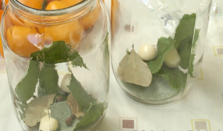 - Dans un récipient en émail ou en verre, les feuilles de cassis et les feuilles de laurier restantes sont déposées sur le fond.