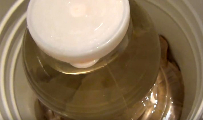 - Par en haut, établissez l'oppression pour que le processus de compression des corps de fruits commence. Sous la pression et en interaction avec le sel, les champignons commencent à sécréter du jus, ce qui est nécessaire pour un stockage ultérieur de la pièce.