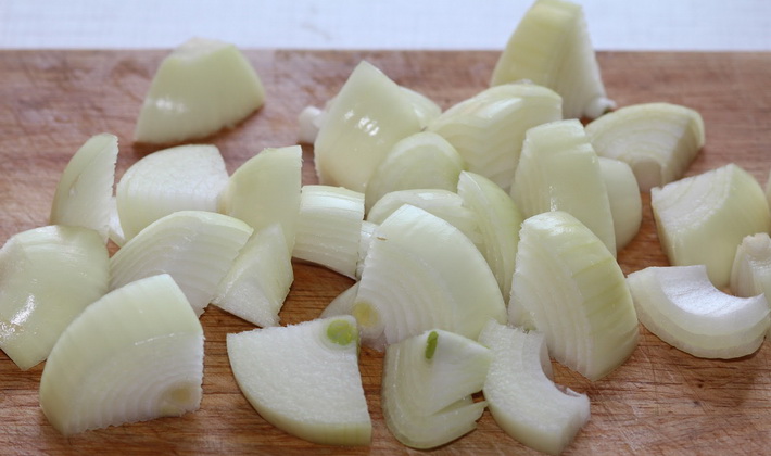 - Épluchez 700-800 g de pommes de terre et coupez-les en lanières. Moudre deux oignons sous la forme de petits cubes.