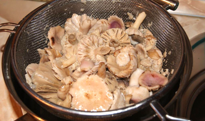 - Afin de supprimer toute amertume possible de certaines variétés de russula, il est nécessaire de les faire tremper pendant 1 à 2 heures et de les faire bouillir à feu doux pendant 40 à 50 minutes. Filtrer et rincer les champignons cuits à l'eau courante.