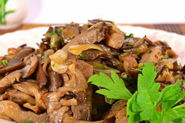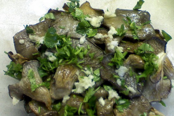 Considérez l'option la plus simple des champignons pleurotes frits - à l'ail. Vous pouvez compléter le plat avec des herbes fraîches de basilic ou de persil.