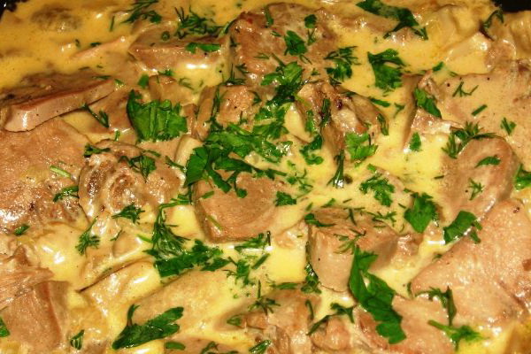 Langues de porc bouillies, frites avec des pleurotes, beaucoup appellent l'un des plats les plus délicieux. Il est servi non seulement pour le déjeuner ou le dîner, mais les décore également avec une table de fête.