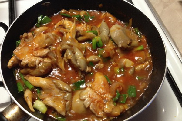 Comment faire frire les pleurotes et faire cuire la langue de porc avec eux