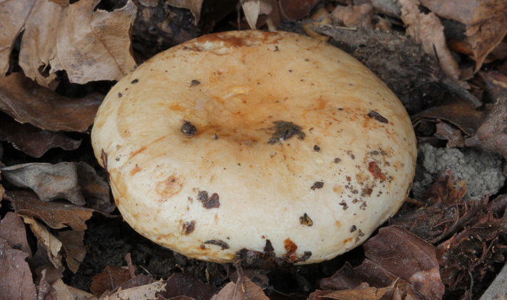 La chair de la coiffe est jaunâtre ou brun clair, cassante, le jus laiteux ne change pas de couleur.