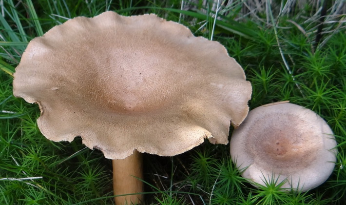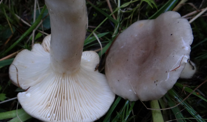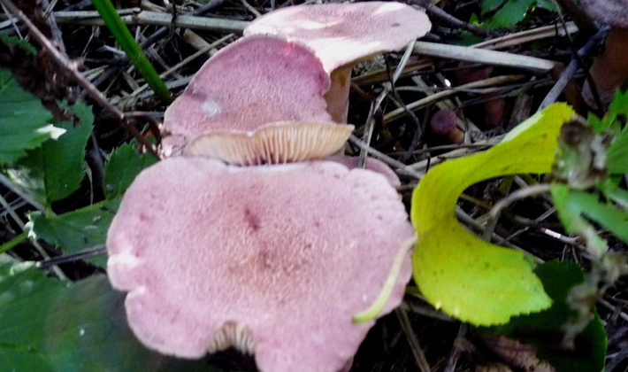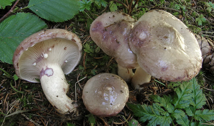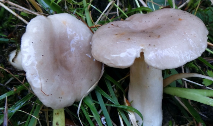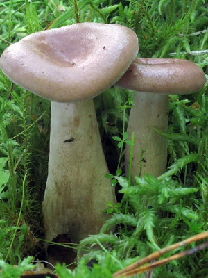 Similarité avec d'autres espèces. Le lilas laiteux est semblable en couleur à lisse, ou Lactaire commun (Lactarius trivialis), qui se distingue par des bords arrondis et des zones concentriques prononcées avec une teinte pourpre et brune.