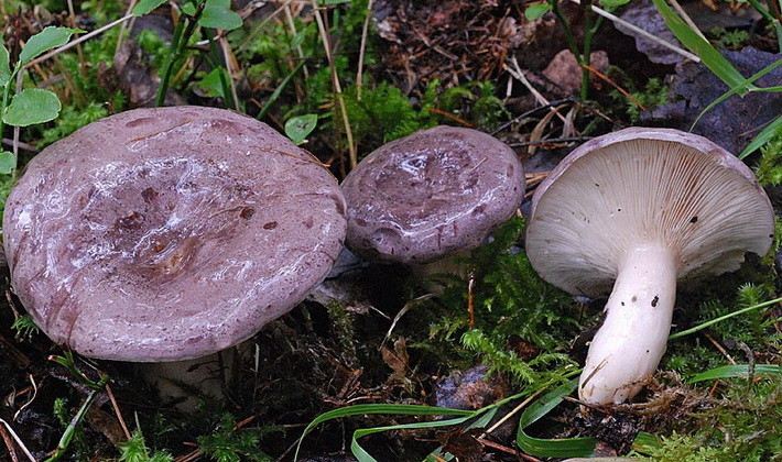 Emplacements du lilas lactarius (Lactarius lilacinum): feuillus avec des chênes et des aulnes, des forêts de feuillus et des forêts mixtes, poussent individuellement et en groupes.