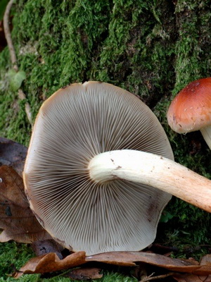 Records: fréquents, à croissance étroite, gris clair ou gris jaune. Avec l'âge, la couleur devient gris-olive, parfois avec une teinte pourpre.