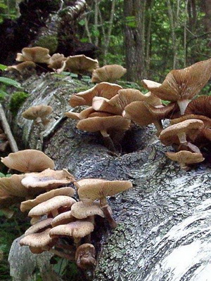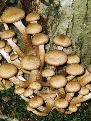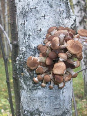- Sur les souches sur lesquelles poussent les champignons de miel: bouleau, pin et autres variétés