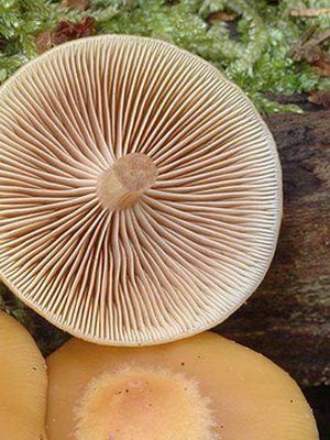 Records: la couleur des plaques varie du jaune clair à un jeune âge au brun rouillé à maturité. Les jeunes spécimens ont une couverture en toile d'araignée qui recouvre les plaques. Habituellement, les plaques poussent jusqu'à la tige.