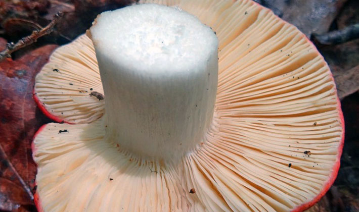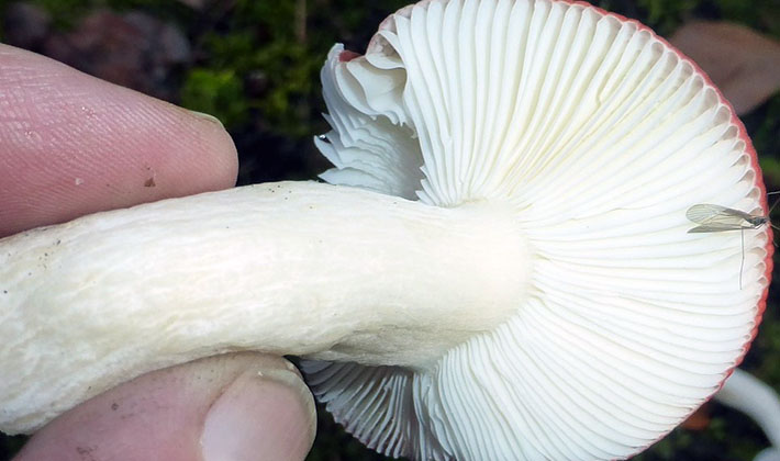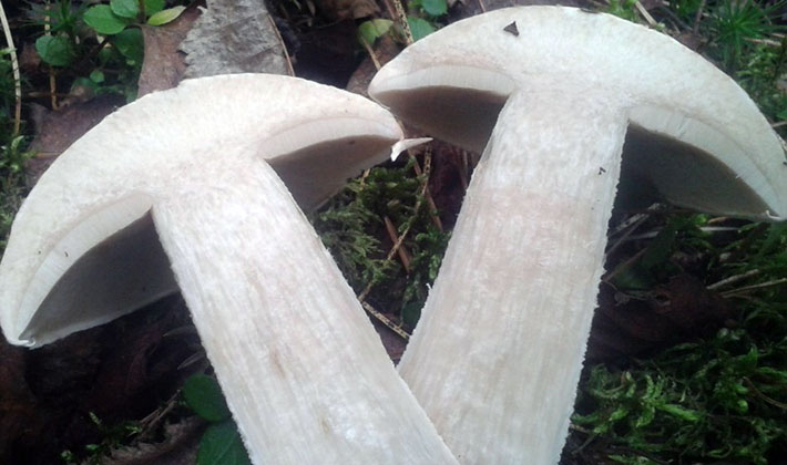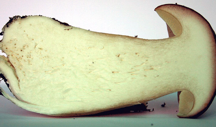 Pulpe La deuxième particularité de l'espèce est une pulpe très dense, blanche, qui ne change pas de couleur à la pause. Il n'y a pas de goût, mais il dégage une agréable odeur de champignon.