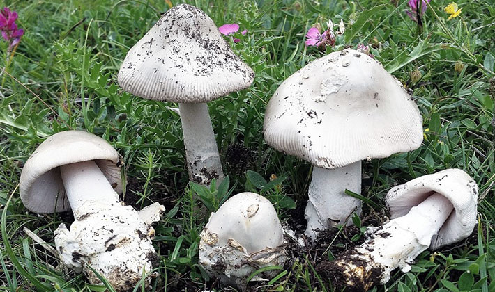 Vues similaires. Il faut être particulièrement prudent lors de la cueillette de bons champignons comestibles: prairies (Agaricus campestris), grandes spores (Agaricus macrosporus), champs (Agaricus arvensis). Tous ces champignons à un âge précoce ont des assiettes claires avec une légère teinte rosâtre jaunâtre ou légèrement perceptible et des chapeaux clairs. À cet âge, ils peuvent être confondus avec un crapaud toxique mortel. À l’âge adulte, les plaques de tous ces champignons sont brun clair, rose, brunâtre, tandis que chez le grèbe pâle elles restent blanches.