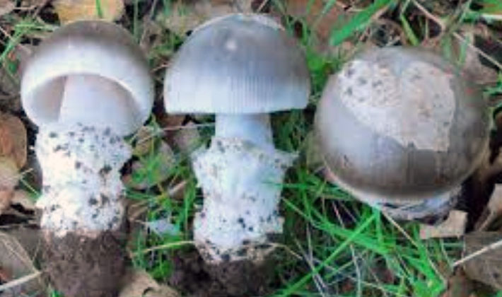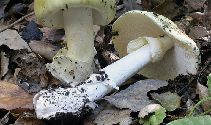 Vues similaires. Le flotteur d'argent non comestible est similaire à la forme blanche empoisonnée d'un toadstool pâle (Amanita phalloides), qui se distingue par la présence d'un large anneau sur la jambe et par l'absence de hachures sur les bords du chapeau.