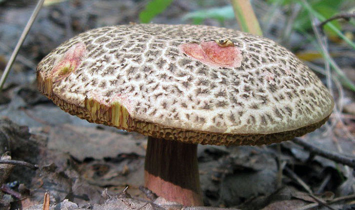 Variabilité: la couleur du chapeau varie du blanc et du crème clair au crème rosâtre. Tubules et pores - du blanc au gris. La jambe blanche s'assombrit avec l'âge, se recouvrant d'écailles gris brunâtre.