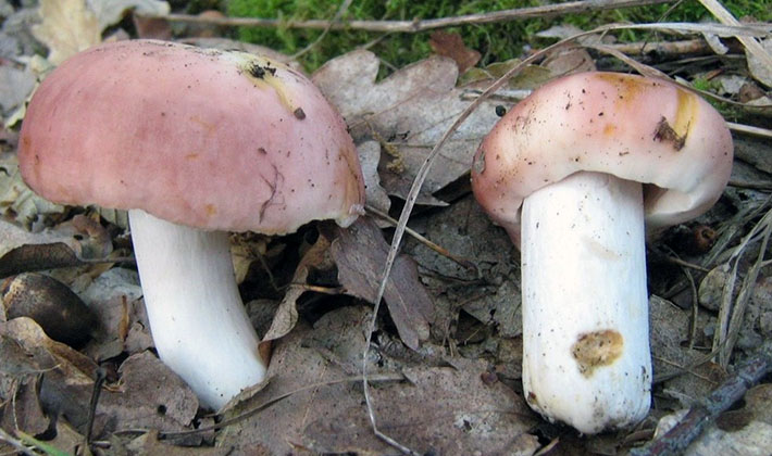 Similarité avec d'autres espèces. La Russula rose est semblable à la Russula comestible Russula (Russula paludosa), dans laquelle le chapeau est rouge orangé, la jambe légèrement en forme de massue, de couleur blanche avec une teinte rose. La pulpe de la tourbière russula n'a pas un goût amer, mais un champignon agréable.