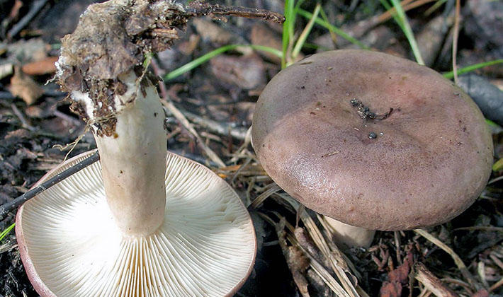Similarité avec d'autres espèces comestibles. Russula violet peut être confondu avec la forme violette d’une Russula fragile (Russula fragilis, f.violascens), qui se distingue par la présence de copeaux et d’un chapeau fragile, ainsi que par un violet clair.
