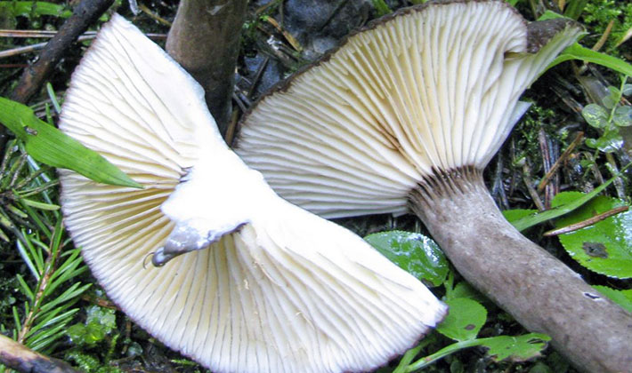Similarité avec d'autres espèces. Le champignon est tellement caractéristique et contraste dans la couleur foncée du chapeau, des jambes et des plaques claires qu'il en diffère facilement des autres et ne possède pas d'espèces très similaires.