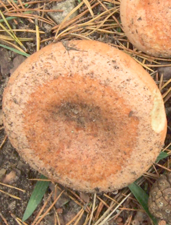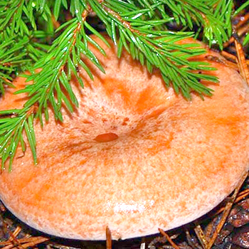 Les bords de la casquette ne sont pas arrondis à la caméline, mais simplement abaissés et présentent également de petits villosités à la surface. La peau du champignon est rose, mais si elle est pressée, il reste des taches sombres. Une fois coupé, le thresholus émet un jus laiteux blanc qui, exposé à l'air, ne change pas de couleur.
