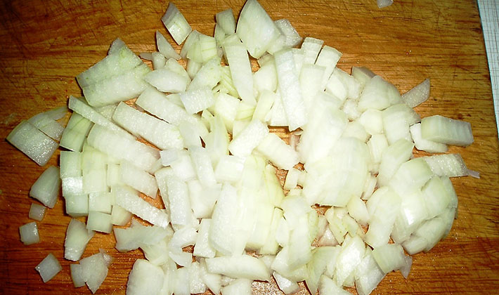 - Épluchez, lavez et hachez les oignons.