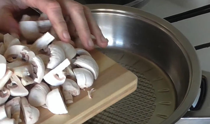 - Rincer les champignons, peler et couper en tranches.