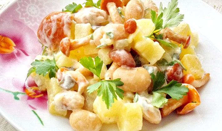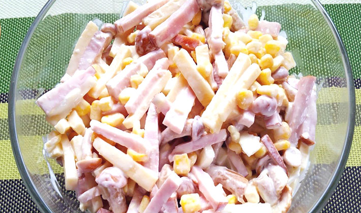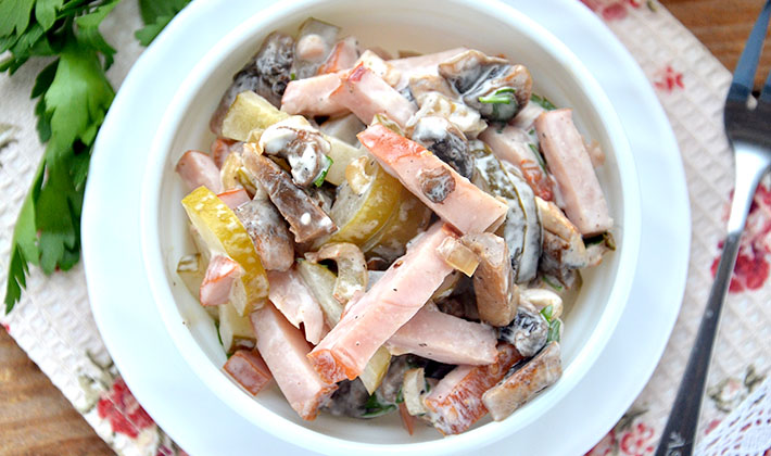 Salade de champignons salés et jambon