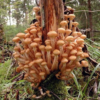 Agaric Miel d'Automne (Armillaria Mellea) il est difficile de cultiver sur une souche séparée, mais il peut s’installer dans une parcelle de jardin sur des souches de bouleau et même sur des pommiers affaiblis.La culture de champignons de miel sur des souches est également possible dans une parcelle de jardin avec un niveau élevé d'eau souterraine. Lors du raffinage des parcelles de jardin, les arbustes et les arbres sont coupés à la place des anciens arbustes et des petites forêts, et les racines des arbres abattus restent sous terre. Le miel d'agaric d'automne maîtrise ces restes avec son mycélium et s'y développe, en rampant hors du sol.