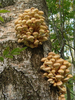 Certains champignons à miel se déposent souvent sur des plantes saines et les détruisent très rapidement. Selon les experts, dans la zone médiane de la Russie, ce sont ces fructifications qui sont récemment devenues la cause de la mort des bouleaux.