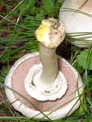 Un autre champignon qui se fait passer pour comestible est le grèbe pâle. Extérieurement, il ressemble à un champignon, alors qu'il n'a pas d'odeur permettant de la reconnaître. Il y a des volvos (sacs à racines) à la base du grèbe, mais les gens ne les remarquent pas toujours. S'il y a le moindre doute sur l'aptitude du champignon, il vaut la peine de casser la pulpe et de voir si elle devient jaune, puis de vérifier le changement de couleur de l'eau pendant la cuisson. C'est l'un des moyens les plus précis et éprouvés de distinguer les vrais champignons comestibles des faux.