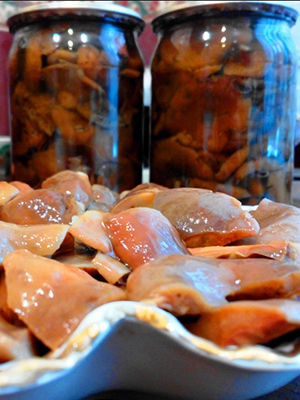 Habituellement, seuls des chapeaux sont utilisés dans la préparation des champignons marinés ou salés, coupant les jambes en deux. Beaucoup de gens pensent que le lait de safran a une jambe amère, alors ils le jettent. Notez que ce n'est pas la bonne conclusion, car si la jambe est amère, le chapeau l'est aussi.