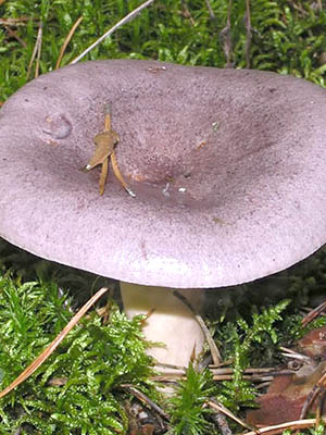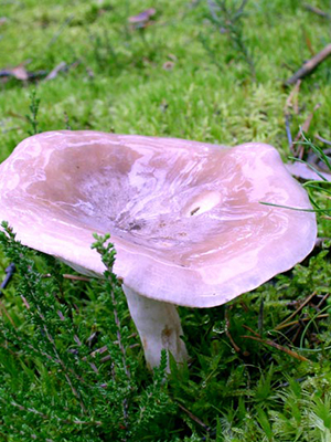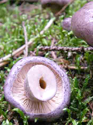 Chapeau d'un diamètre de 5-15 cm, densément charnu, à partir du début convexe, il devient concave-étendu avec un bord ondulé courbé, généralement sans zones ou avec de faibles cercles concentriques, lisses, muqueux. La couleur du champignon est très variable: lilas-bleuâtre, gris bleuâtre, gris plomb-gris, jaune grisâtre-rougeâtre, avec l'âge, acquiert une teinte ocre-rose ou pourpre, parfois avec des taches aqueuses, elle devient brune ou brunâtre. Par conséquent, le champignon pendant une longue période ne peut pas être déterminé. Les plaques sont envahies par la végétation ou courent légèrement le long de la jambe, blanchâtres, légèrement ocres avec l’âge, avec des taches rouillées. La chair est épaisse, blanchâtre, jaunissant jusqu'à maturité. Le jus laiteux dans l'air devient jaune verdâtre. Jambe de 4 à 12 cm de haut, muqueuse, lisse, creuse, généralement gonflée au milieu ou en bas. Il pousse dans les forêts de conifères et les forêts mixtes, principalement sous les sapins et les bouleaux, le long des marais entre les mousses d’août à octobre.