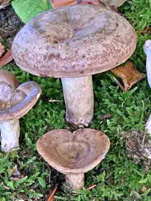 Un chapeau de 5-15 cm de diamètre, d'abord convexe, puis concave-prostré avec des bords incurvés, est asymétrique par rapport à la jambe, gris-lilas. Les plaques sont souvent sinueuses, d'abord jaune clair, puis ocre. La pulpe est blanchâtre. Le jus de lait est abondant, blanc aqueux, très piquant, amer, mais lorsqu'il est bouilli, ce goût disparaît. La jambe est parfois enflée, d'abord solide, puis creuse, grise. On le trouve dans les forêts de bouleaux, les forêts de trembles, les forêts mixtes et de conifères, près des bosquets de noisetier, en bordure de routes et de chemins forestiers. Fruits de juillet à octobre.