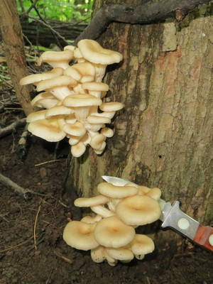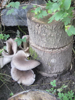 Pour faire pousser des pleurotes sur des souches, les oreillons infectés par des champignons peuvent être installés de façon pittoresque ou être creusés dans une parcelle de jardin. Les premiers fruits sur des bûches épaisses ne peuvent être attendus avant un an. Les blocs destinés à la culture des pleurotes sur les souches doivent avoir une épaisseur minimale de 10 cm et une longueur de 40 cm. Sur les segments de rondins épais, la fructification dure de 5 à 7 ans.
