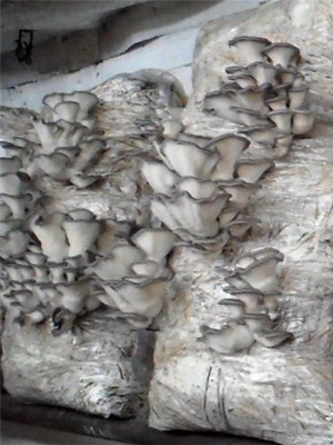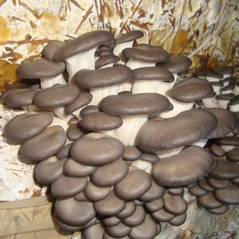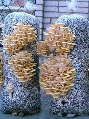 Dans certaines fermes destinées à la culture de champignons, les pleurotes sont cultivés avec succès sur des étagères. Les briquettes de substrat ensemencées de mycélium sont étalées sur des clayettes de 140 cm de largeur, sous la forme d’un lit de 20 cm d’épaisseur. Lorsqu’on utilise un substrat en vrac ensemencé de mycélium, il est versé sur le plateau en une couche uniforme, compacté et recouvert d’un film plastique perforé. Lorsque vous cultivez des pleurotes sur des étagères, les champignons poussent verticalement vers le haut et leur forme sera presque symétrique, comme des champignons poussant au sol.