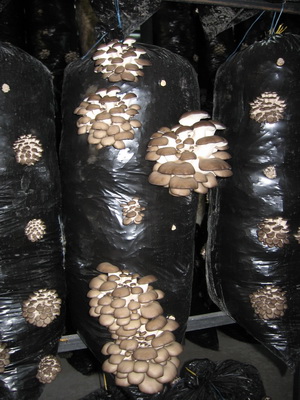 Il existe une autre technologie pour la culture des pleurotes - dans des sacs placés dans des serres. Il est utilisé dans certaines exploitations pendant la période automne-hiver, entre les ventes de légumes. Le complexe agro-industriel Moskovsky a longtemps pratiqué avec succès la culture de champignons pleurotes dans des serres sans légumes en hiver. Les serres de verre vides ne peuvent pas garder la neige sur le toit, donc leur air est chauffé tout l'hiver. La chaleur pour la culture des champignons est gratuite.