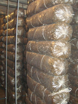 Après refroidissement, le mycélium est ajouté au substrat, soigneusement mélangé et emballé. La masse du sac est de 16-18 kg.