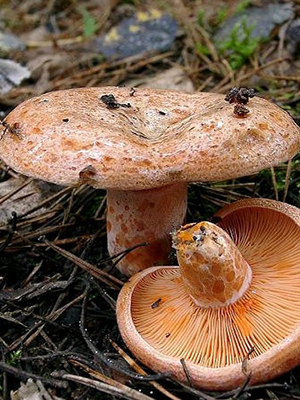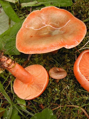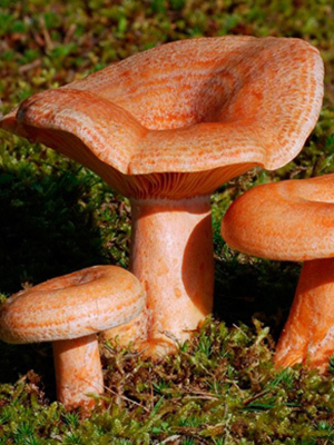 Les roux préfèrent généralement les sols sableux, mais ils sont également très difficiles à confondre avec les autres fructifications. Les champignons ont une apparence très remarquable - un chapeau orange vif, convexe à un jeune âge, et en forme d'entonnoir chez l'adulte, avec des cernes bien visibles. Il est vrai que les champignons d’épicéa sont de couleur plus foncée et présentent des cercles verdâtres à la surface. Lors de la coupe, la chair du champignon sécrète un jus laiteux de la même couleur que le chapeau.