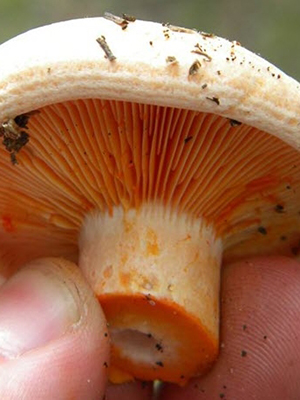 Une autre caractéristique des champignons safran qui poussent en octobre est leur teinte verdâtre après la coupe. Je dois dire qu'une telle propriété peut effrayer les ramasseurs de champignons, mais c’est totalement vain, car même avec un peu de contact, les assiettes de champignons comestibles deviennent vertes.