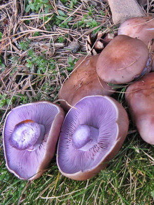 Le chapeau de la fructification a une couleur caractéristique correspondant au nom, à savoir: violet-violet, violet foncé, au centre-brun-violet. En vieillissant, l'ombre disparaît et s'éclaircit. La forme du chapeau est plate-convexe, avec un diamètre pouvant aller jusqu'à 20 cm, avec un fin bord incurvé, la surface est lisse, humide, charnue.