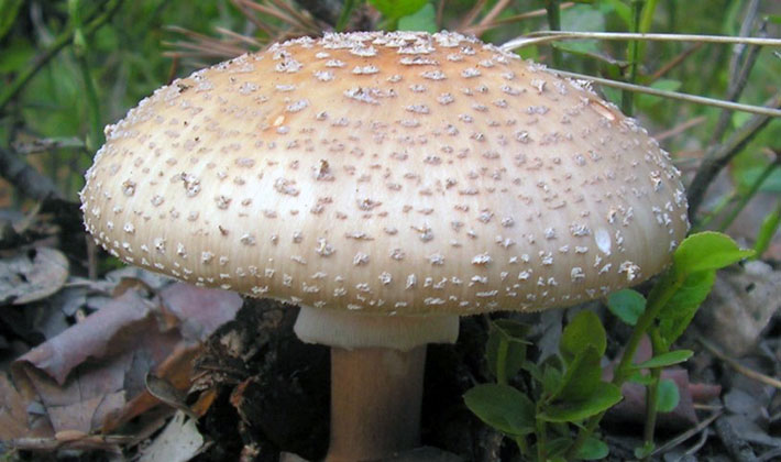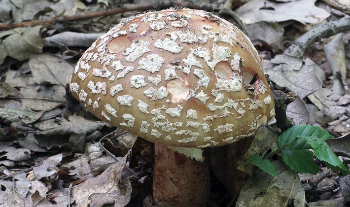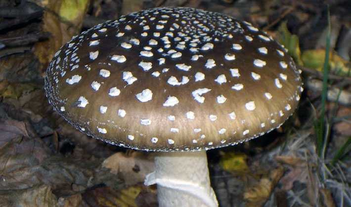 Vues similaires. Amanita gris-rose semblable à Amanita pantherina (Amanita pantherina), qui est brun clair.