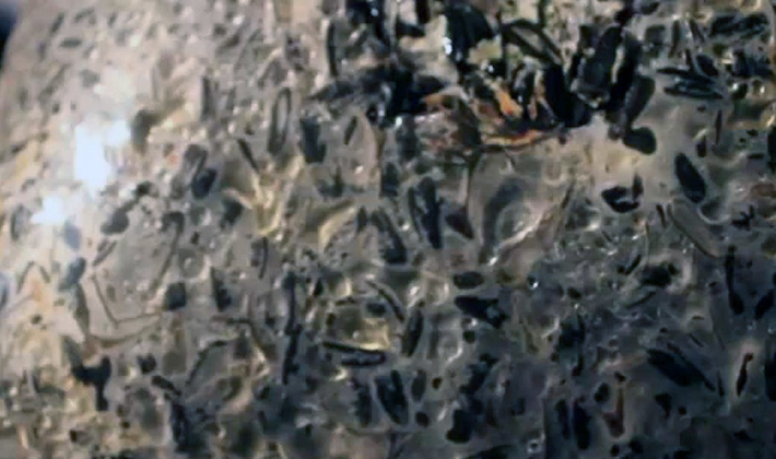 Développé simultanément avec le mycélium champignon, ce parasite commence à l'emporter progressivement. Les taches peuvent être clairement visibles à travers le sac. Ils sont même faciles à vérifier en versant le substrat du sac sur le papier et en le divisant en couches horizontales. La moisissure est généralement différente de celle du champignon mycélium, couleur - il est toujours gris argenté. En développement, l’effet déprimant de la maladie sur la fructification du champignon. Il ralentit d'abord, puis s'arrête finalement.